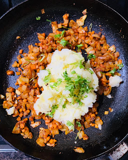 - Finally add mashed potatoes, cilantro leaves & mix everything well. Saute for 2-3 minutes & turn off the flame. Keep aside.