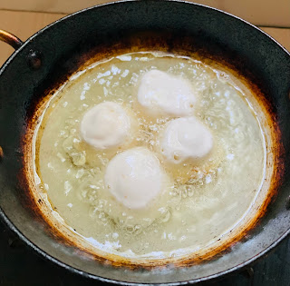- Fry them in small batches for 4-6 minutes or until golden brown & keep turning the poornalu with a strainer ladle while frying otherwise they get discoloured.